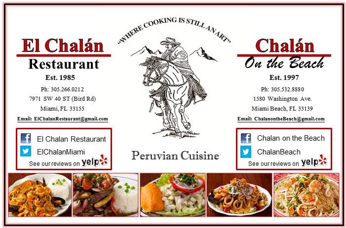Serving excellent Peruvian Cuisine in Miami Beach for over 20 years. Ceviches, Seafood, Meat, Chicken, and over 80 other Peruvian plates. Large portions and modest prices make this a great stop for couples, families, and all business gatherings.